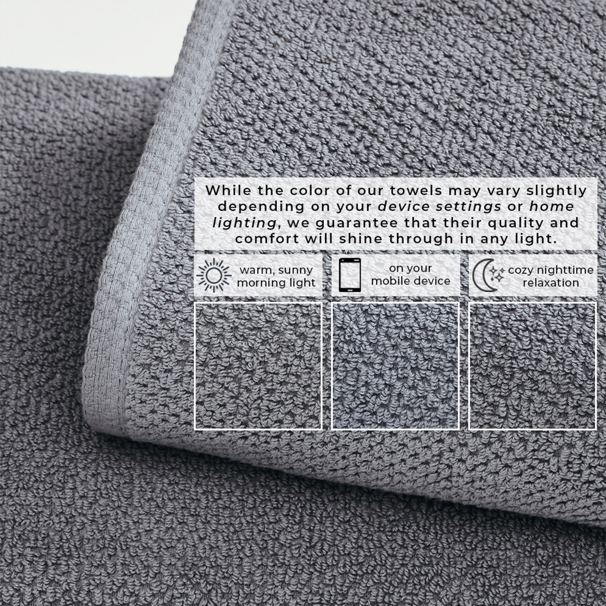 6 Piece Set: Includes 2 bath towels, 2 hand towels & 2 washcloths
