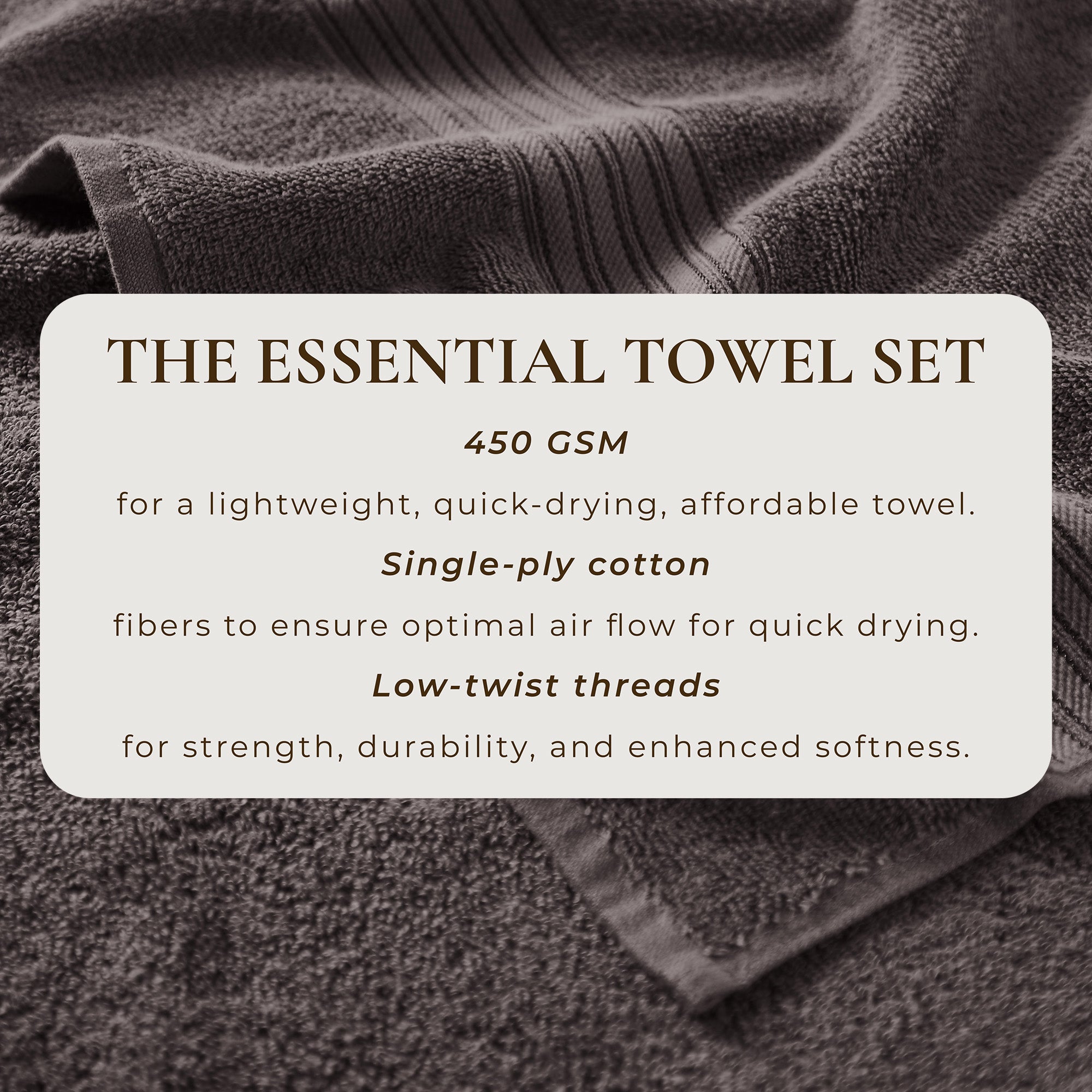 6 Piece Set: Includes 2 bath towels, 2 hand towels & 2 washcloths