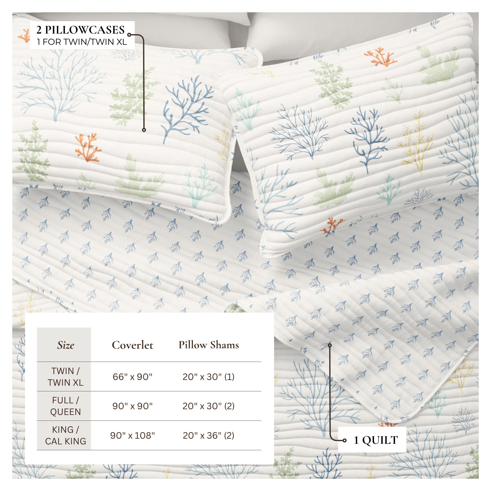 Twin / Twin XL: Quilt 66" x 90", Shams (1) 20" x 26"