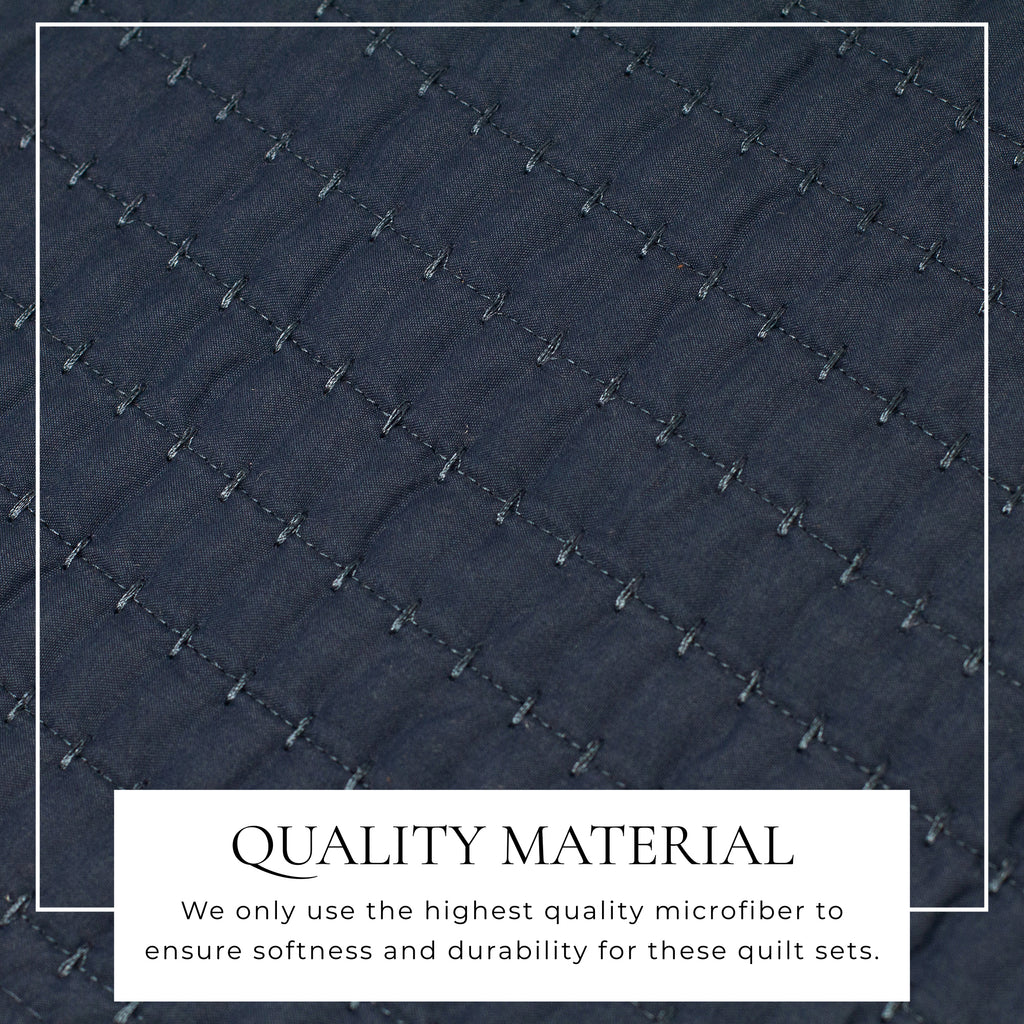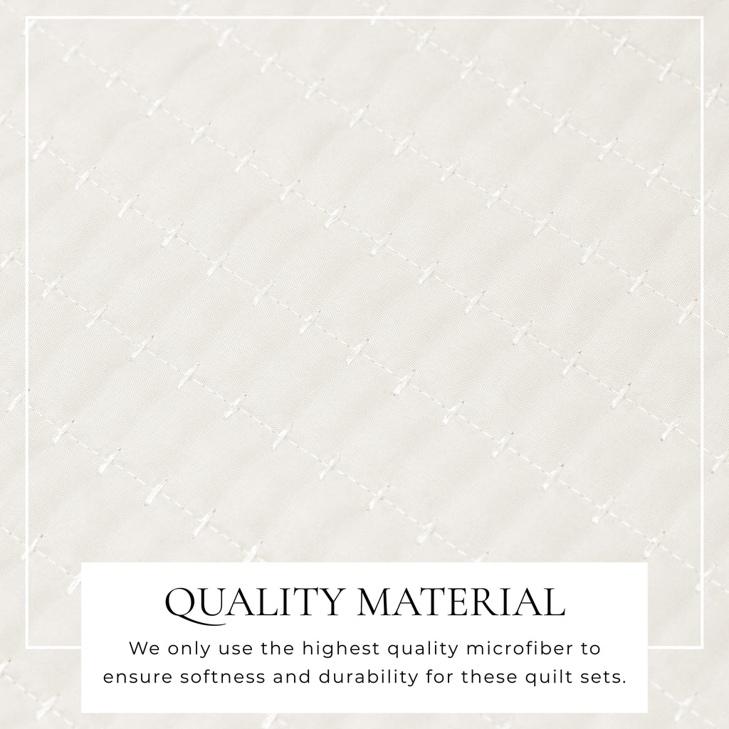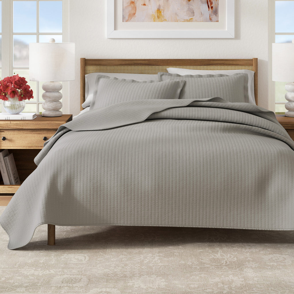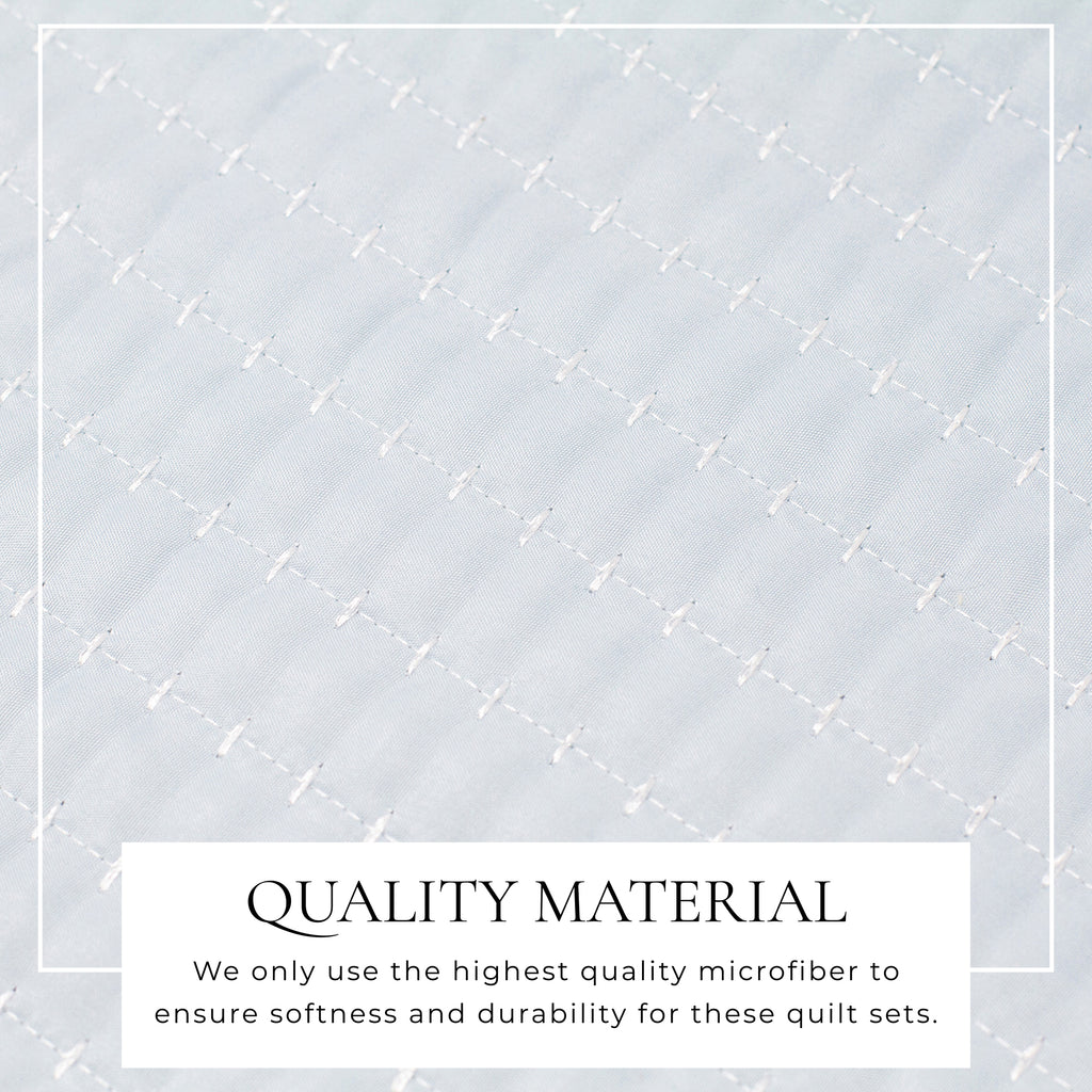 Elevate your bedroom with the timeless simplicity of our solid quilt. This solid channel stitch quilt set combines minimalist design with classic comfort, creating a look that feels both modern and enduring. The subtle channel stitching adds texture and dimension, while the lightweight warmth makes it a versatile layer for every season. Available in a palette of breathtaking colors, this set is designed to seamlessly complement neutral home décor or add a touch of refined contrast. Whether styled on its own or layered with your favorite throws and pillows, the Alicia Collection brings effortless elegance and cozy warmth to your space.