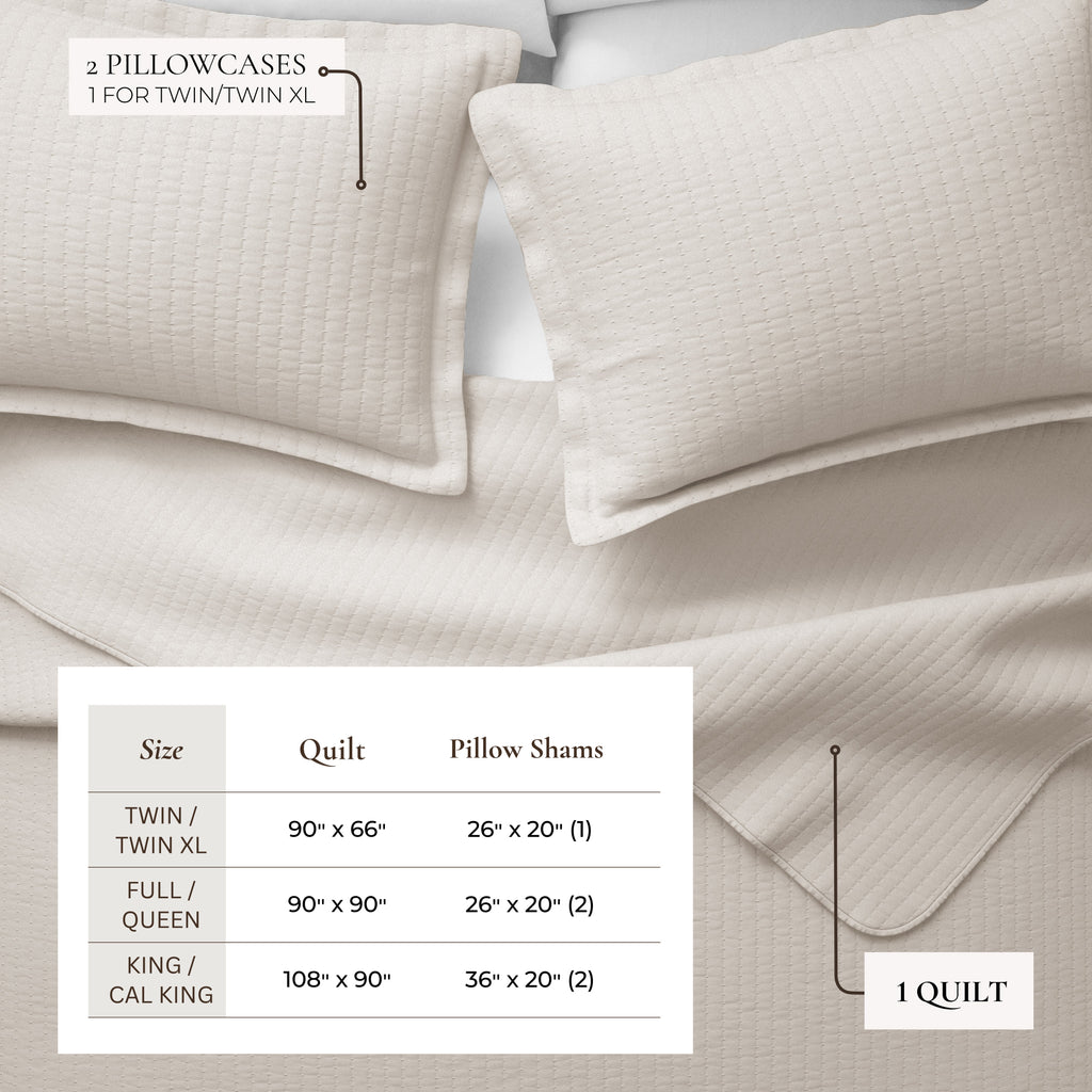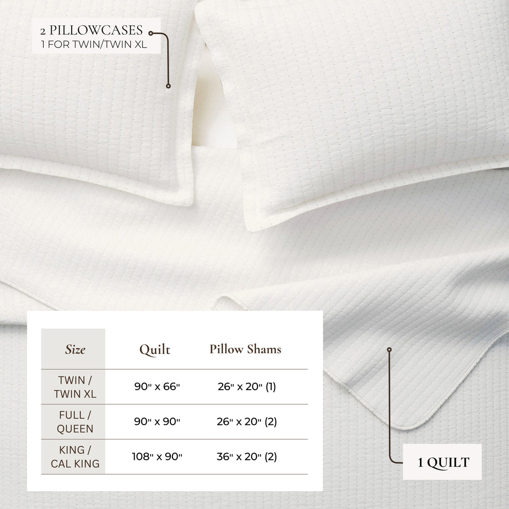 Full / Queen: Quilt 90" x 90", Shams (2) 20" x 26"