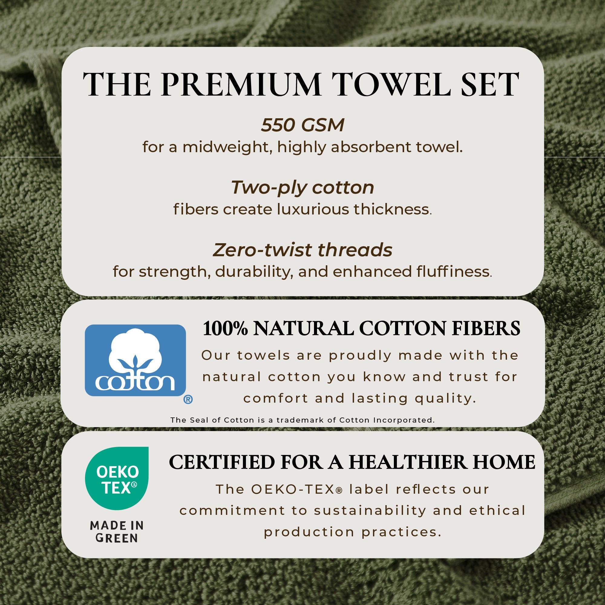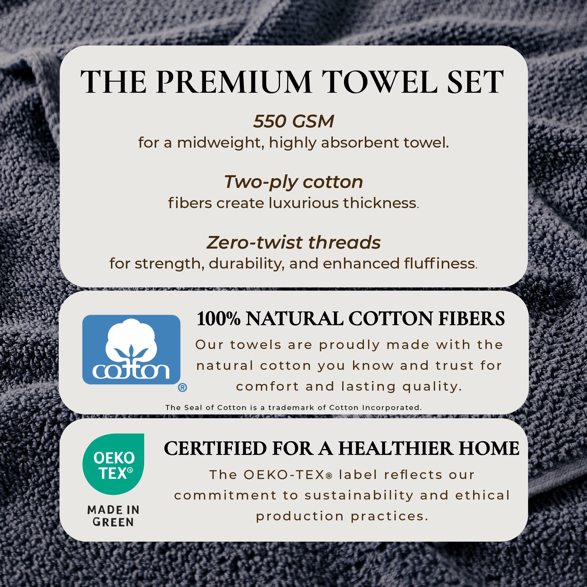 6 Piece Set: Includes 2 bath towels, 2 hand towels & 2 washcloths