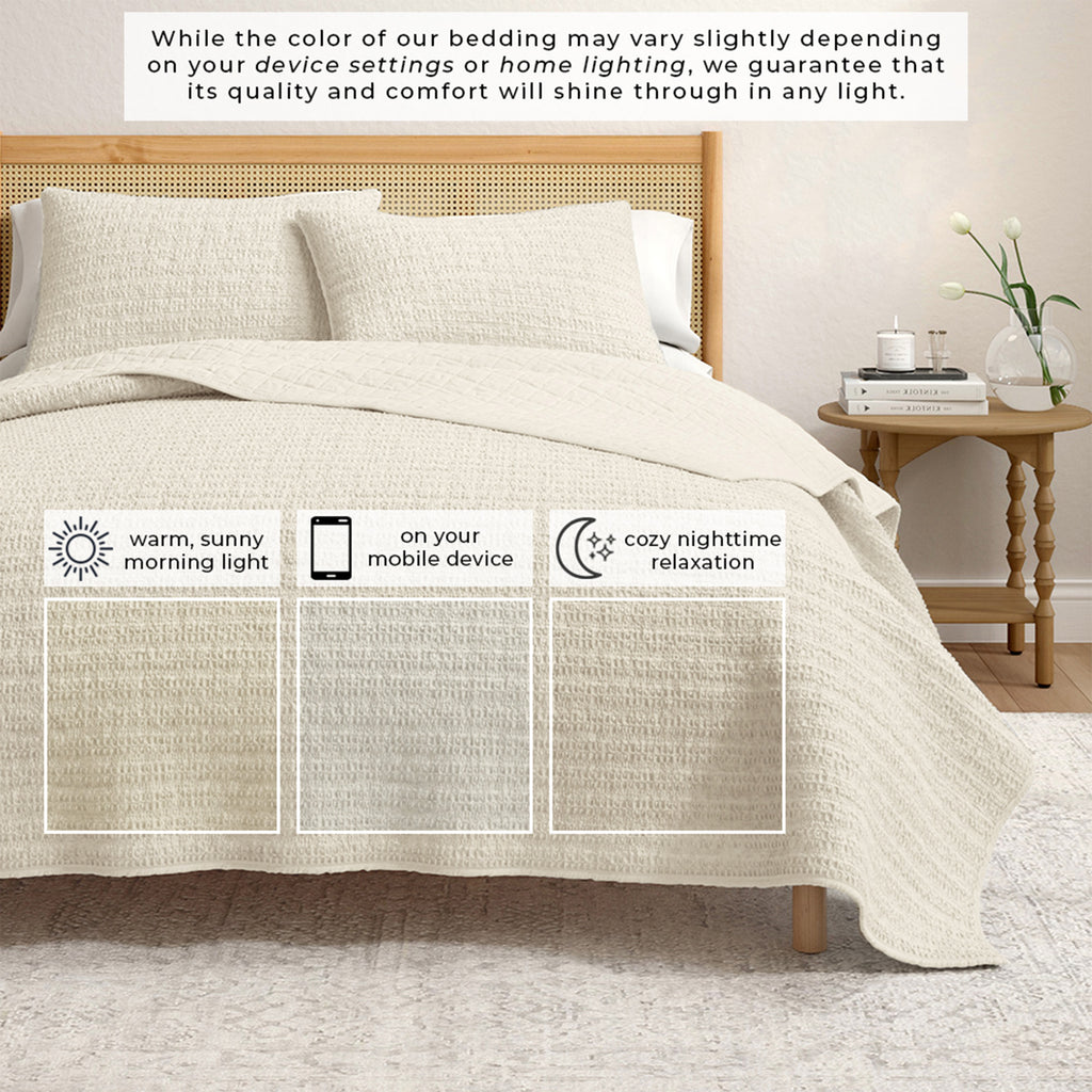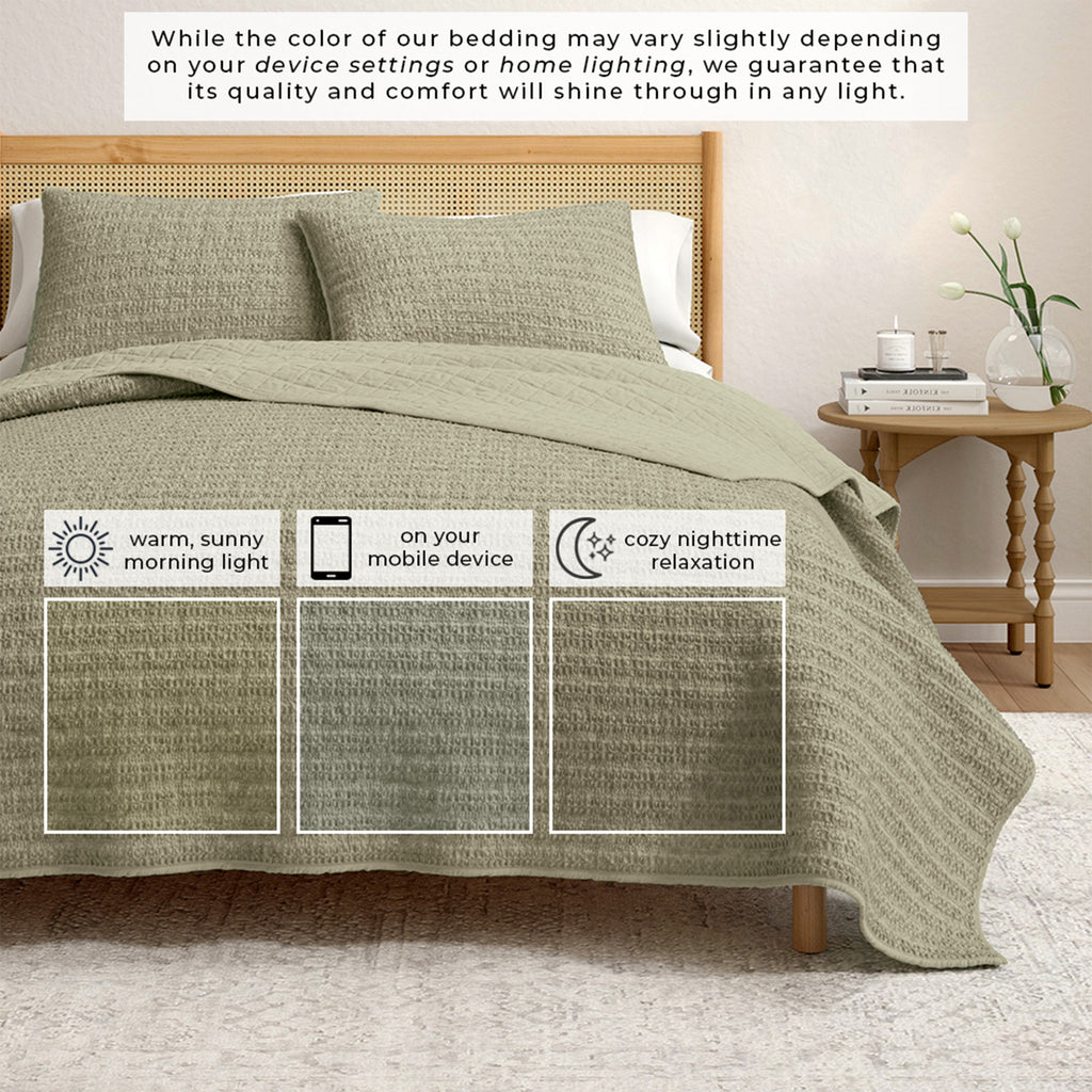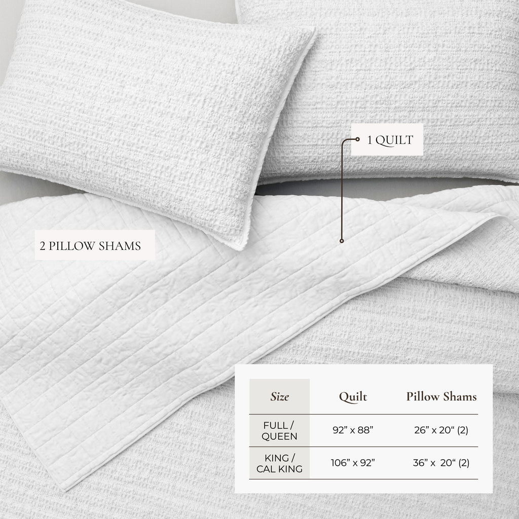 100% Cotton Honeycomb Waffle Garment Washed Quilt Set - Genevieve Collection
